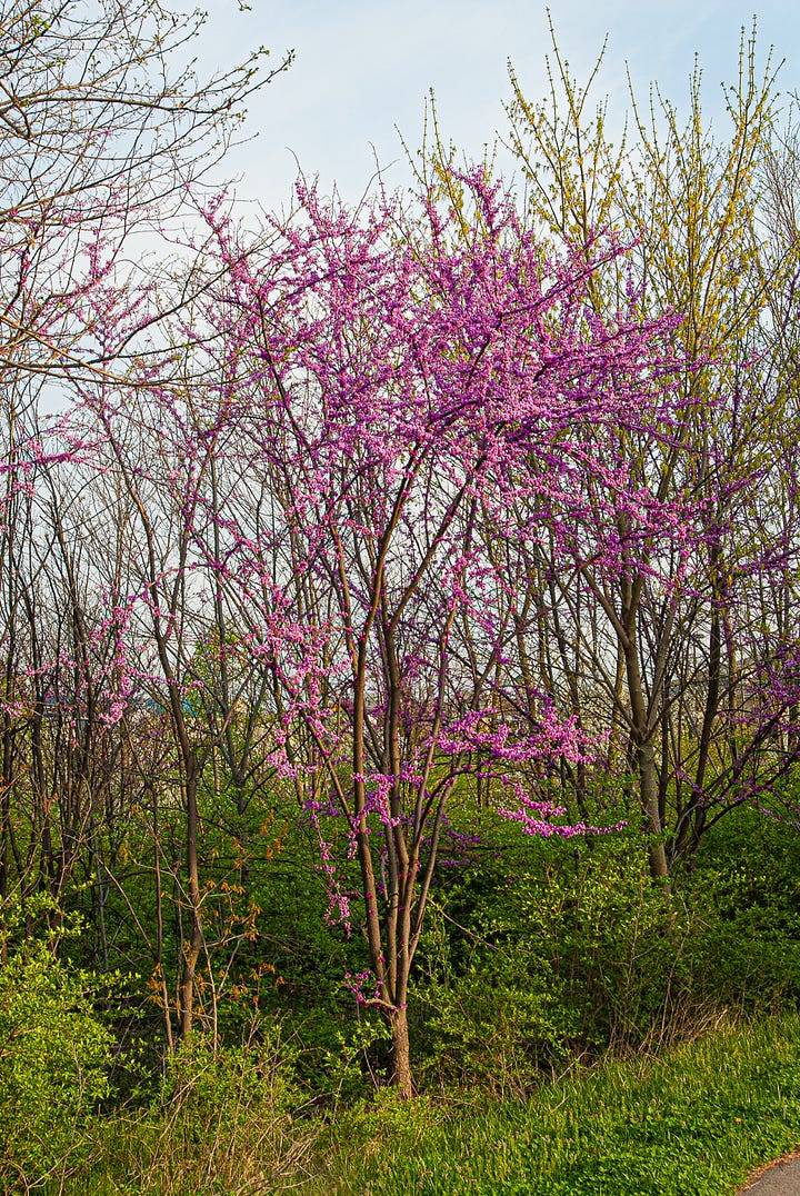 I learned about redbuds from my mother who grew up in Indiana and loved them above all Spring-flowering trees.